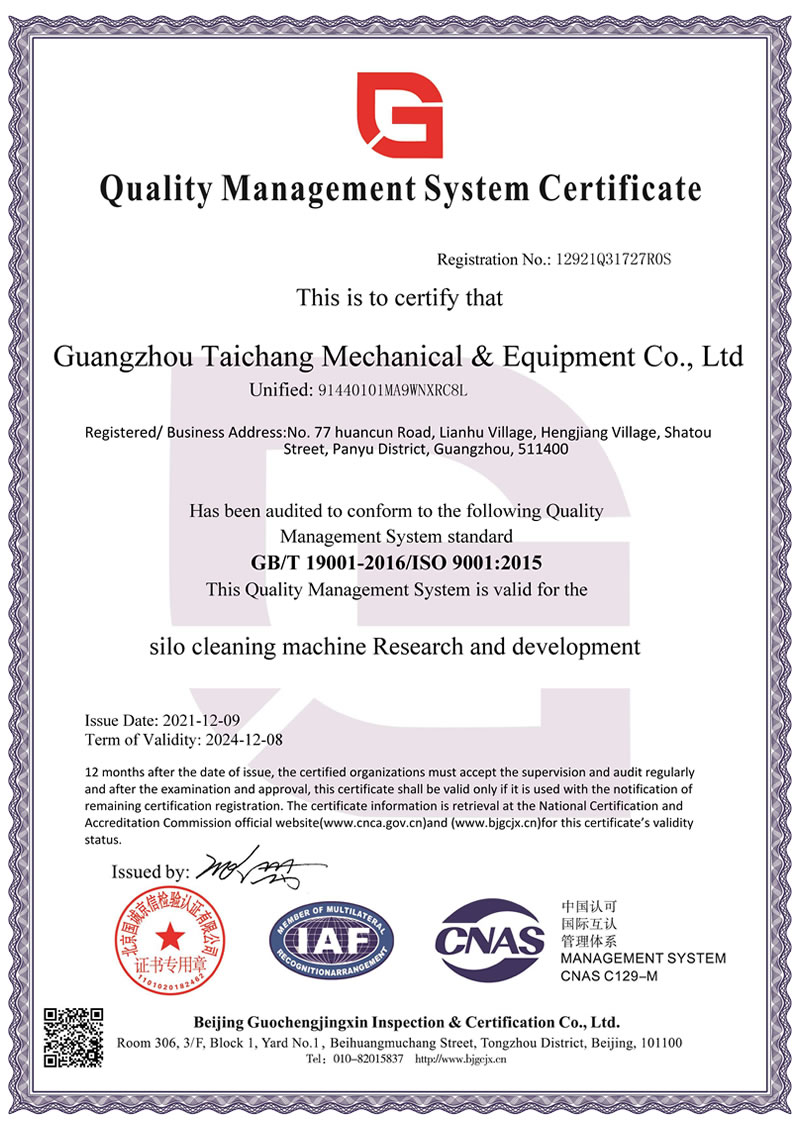廣州市泰昌機(jī)械設(shè)備有限公司公司致力于工業(yè)機(jī)械化生產(chǎn),專業(yè)研發(fā)和生產(chǎn)自有專利的自動(dòng)化筒倉(cāng)清理設(shè)備,有一整套筒倉(cāng)清理系統(tǒng)及解決方案。